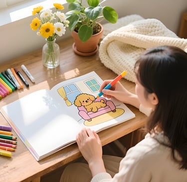 Coloring gives you a safe, low‑pressure space to explore color, mood, and imagination. Every page becomes a tiny story you get to finish in your own way.